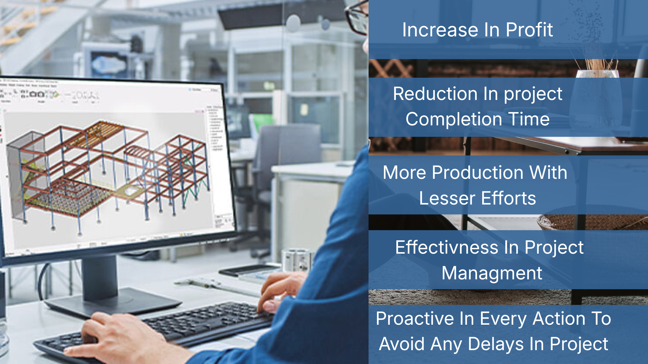 To maintain long lasting relationship with our clients by providing cost and time effective service through innovative project management solution and strategic planning in steel detailing. Transforming business in more profitable and productive by providing precise and high quality product in timely manner.